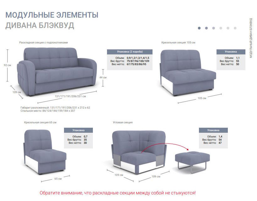 Преимущество дивана - механизм аккордеон, который при раскладывании образует высокое ровное спальное место, по комфорту сравнимое с настоящими кроватями. Кроме этого, только такой механизм позволяет выбирать размер дивана из 5 вариантов: 131/171/191/206/231 см.