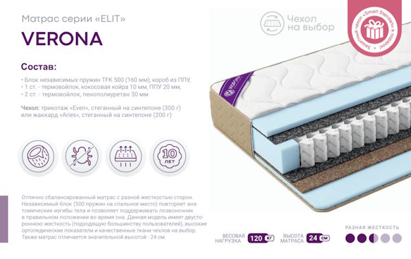 | Жесткость у матраса | Разносторонняя жесткость |