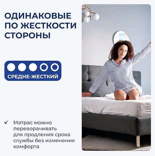 Высота матраса Кристалл составляет 30 см. Максимальный вес человека не ограничен. Комплектуется красивым несъемным чехлом с терморегулирующими особенностями. Жесткость данной модели относится к классу «средняя».