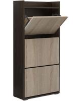 Обувница XL Танго - трехсекционная компактная тумба для удобного размещения и легкого доступа к хранимой обуви. Каждая секция модуля открывается автономно. Обувница имеет регулируемые опоры. Материал изготовления: ЛДСП в нескольких комбинациях тонировок