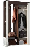 Модель имеет современный дизайн, наполнение представляет собой распашной шкаф со встроенным в дверцу зеркалом, открытую нишу с крючками для верхней одежды и отделение для хранения обуви,