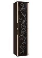 Модель из одноименной мебельной коллекции имеет распашные дверцы из тонированного стекла, украшенного пескоструйным рисунком и стразами, на вместительных внутренних полках вы сможете расположить необходимые вещи.