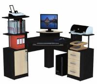 Универсальный компьютерный стол для дома и офиса – СК-26 – функциональный и стильный. Угловая модель содержит большую столешницу и подставку под монитор. Такое расположение компьютера оптимально для работы и не вредит зрению. Также для удобства имеется выкатная полка под клавиатуру. Таким образом, пространство столешницы не захламляется и освобождает место для письменных работ. Также в модели предусмотрены места для хранения в виде тумбы, снабженной мебельным замком, что является неоспоримым преимуществом в хранении важной информации и документов. Бумаги и письменные принадлежности поместятся в выдвижных ящиках. А оргтехника, книги и аксессуары можно разместить на надстройках с обеих сторон стола. Полки облагорожены хромированными трубками и придают изделию современный вид. Благодаря своей пропорциональности и объемным размерам данная модель достойно выглядит как в офисе, так и дома. К данной модели может быть дополнительно приобретена подставка для системного блока.